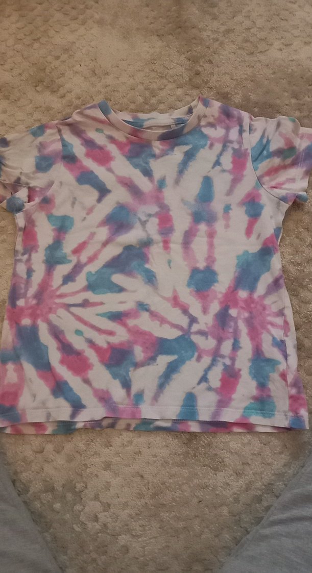 Yumuşak kumaştan, bol kesim, kısa kollu ve yuvarlak yakalı kız tişörtü. Pastel tonlarda batik desenli, bohem ve sokak modası stilinde rahat bir parça.