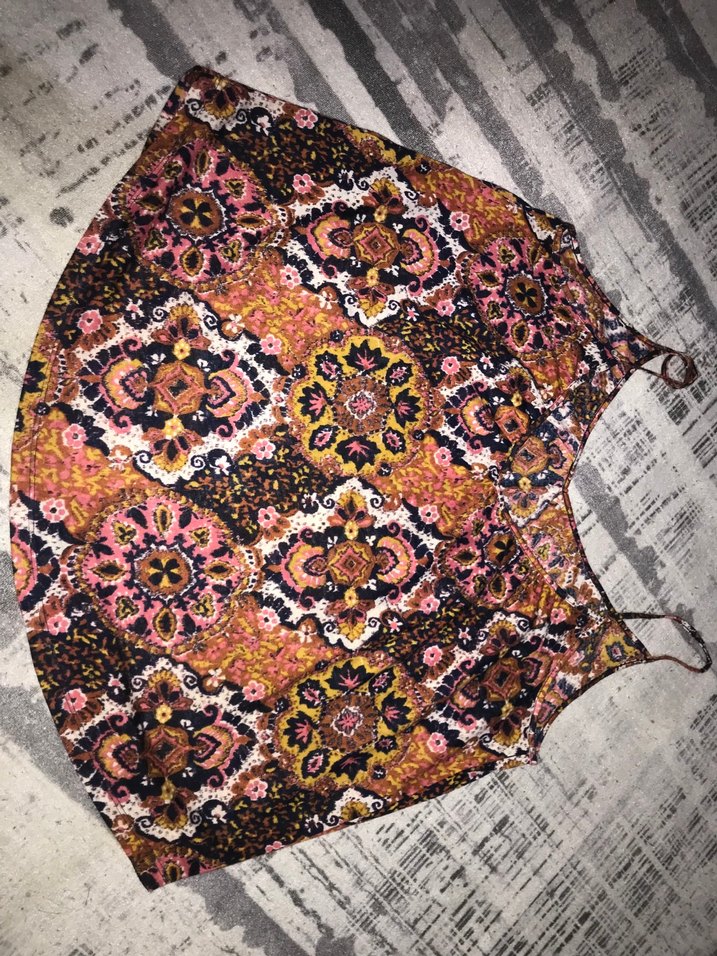 Kızlar için çok renkli, koyu tonlu bohem desenli, dantel detaylı, geniş kesim ve kayık yakalı kolsuz pelerin.