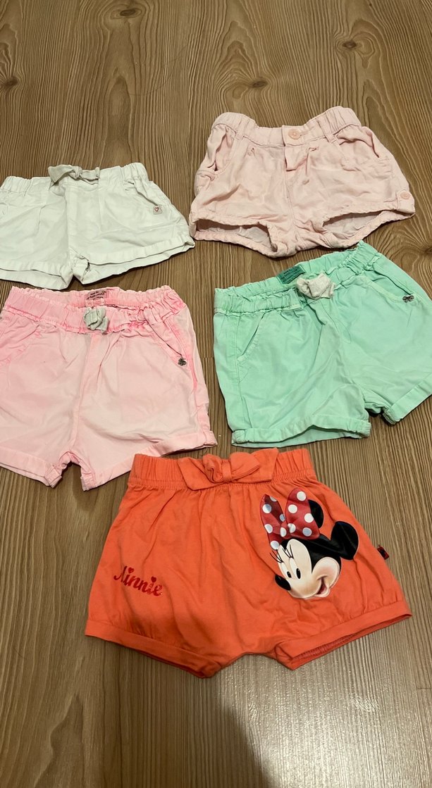 Rahat kesim, düğmeli pamuklu şortlar, pastel çok renkli. Bir çiftinde Minnie baskısı var. Trendy günlük sokak stili için uygundur.