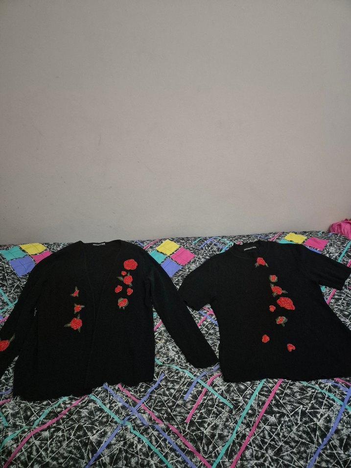 Kızlar için bol kesim, uzun kollu, koyu renkte, çok renkli payetli çiçek desenli hırka, street wear tarzında.