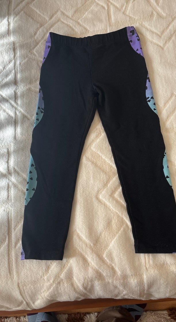 Kızlar için yumuşak , yanları çok renkli tie-dye desenli, dar kesim tayt. Trendy casual sokak giyimine uygun.