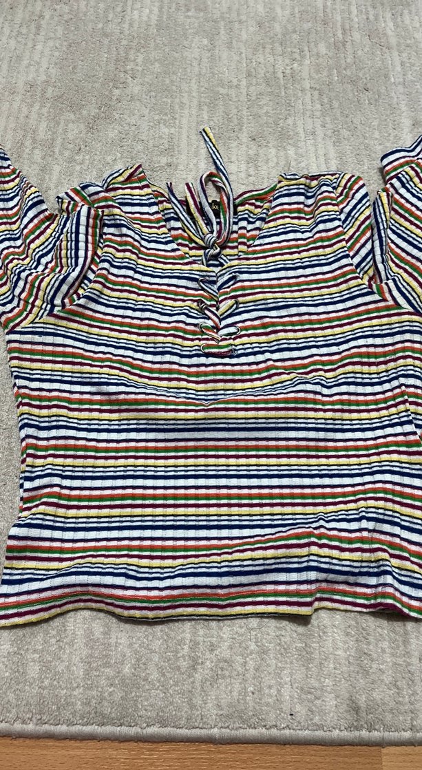 Yarım kol krop tekne yaka ve pileli tasarıma sahip, çok renkli çizgili kızlar için fitted bluz. Bohem ve metro tarzda sokak giyimi için uygundur.