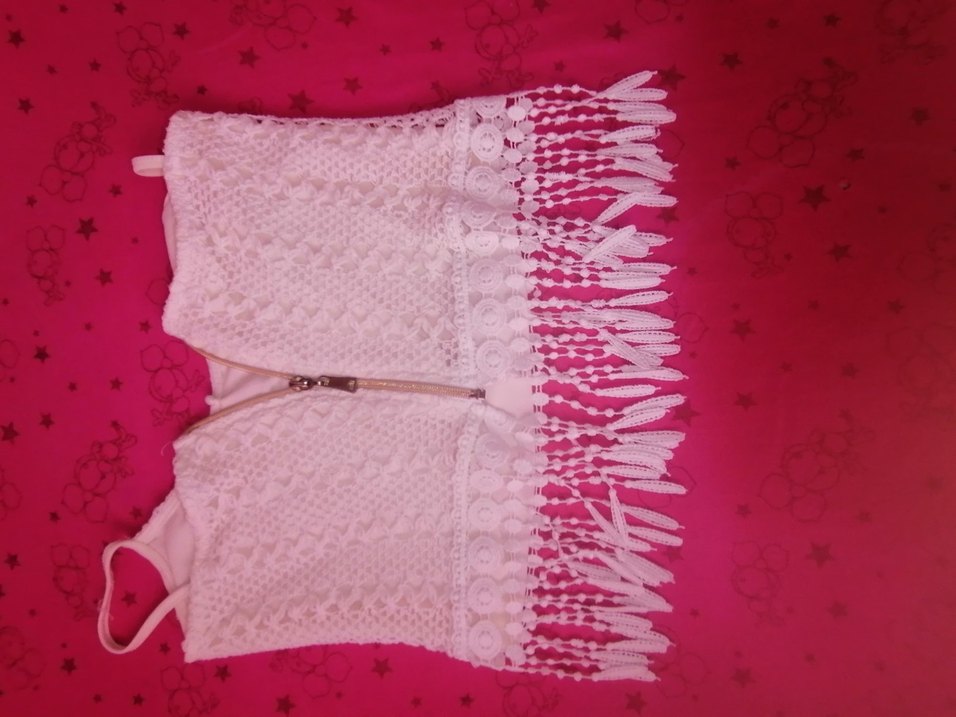 Kızlar için dantel işlemeli, püsküllü, kayık yaka ve dar kesim bohem tarzda kolsuz poncho. Tekstil malzeme, yumuşak bir dokunuş sağlar.