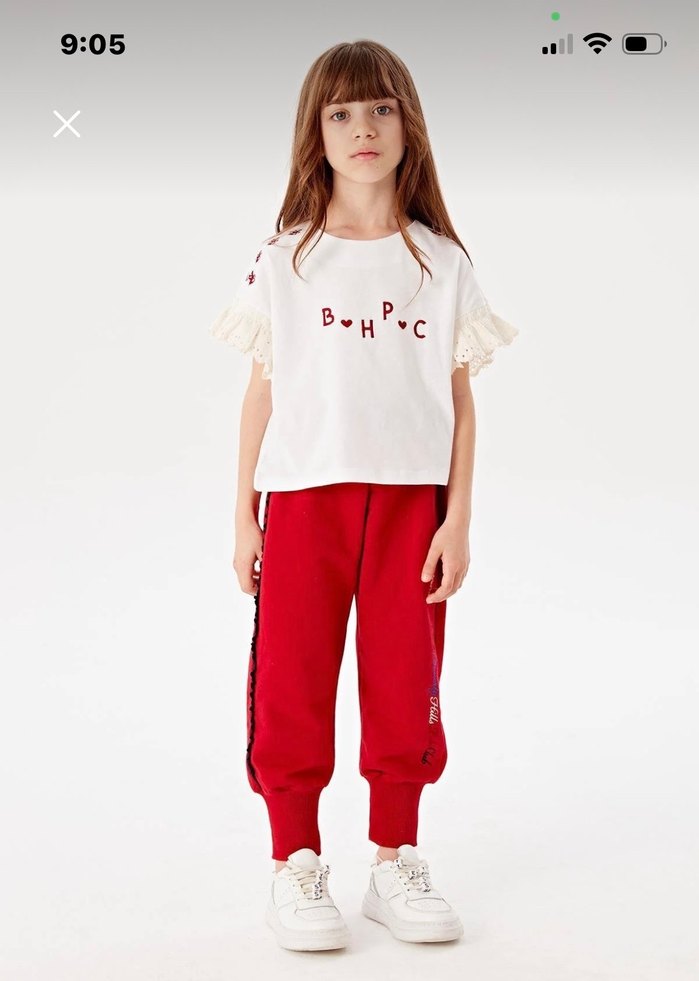 Kızlar için pamuklu, hafif kırmızı renkli, bol kesim. Nakışlı desenler ve dantel detayları bulunur. Rahat ve şık bir parça. ⏰