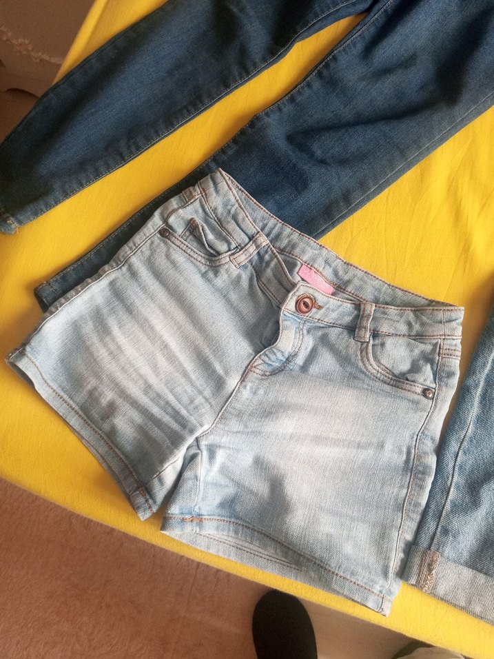 Kızlar için dar kesim, desen içermeyen ve yumuşak gri tonlarında denim şort, rahat sokak stili için uygun.
