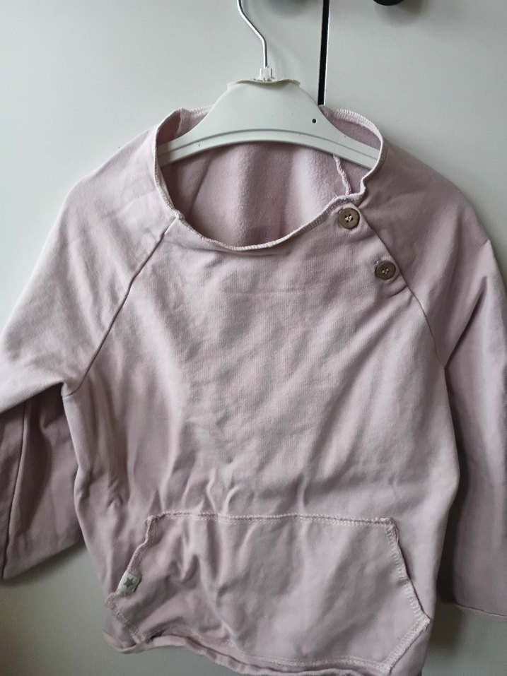 Kızlar için düğmeli, yuvarlak yaka keten sweatshirt. Rahat kesimi, uzun kollu ve sade bej renktedir. Normcore tarzında, desensiz basic bir modeldir.