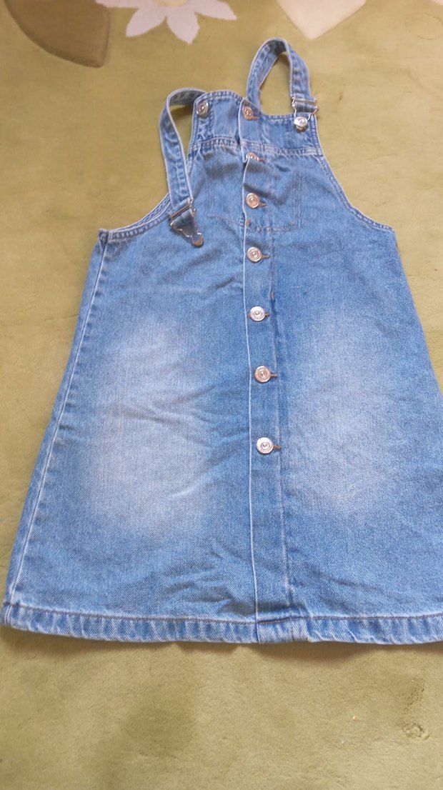 Kızlar için düğmeli kot salopet elbise