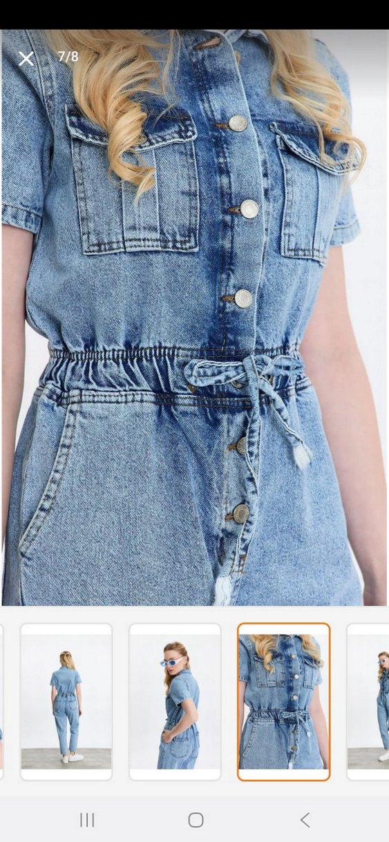 Kızlar için düğmeli, kısa kollu, bol kesim kot tulum. Sokak stiline uygun, mavi ve gri tonlarında. yeniden farksızdır