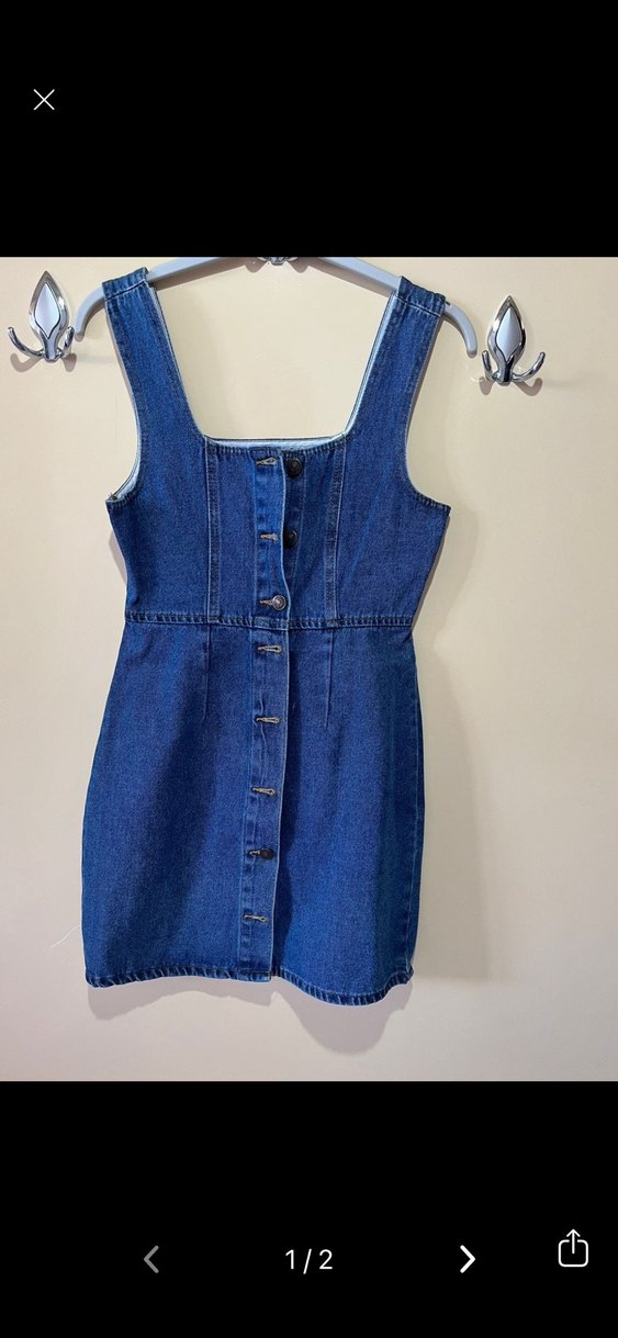 Kızlar için fitted kesim, düğmeli, lacivert denim salopet. Kolsuz tasarımı ve sade görünümü ile sokak modasına uygun.