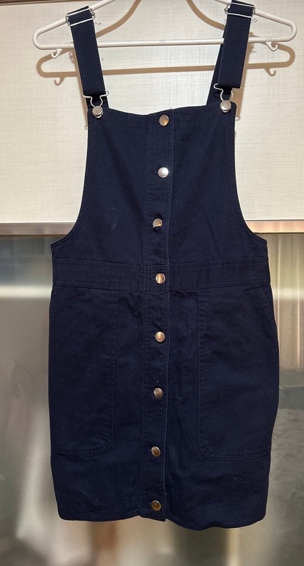 Kızlar için lacivert renkli, düğmeli ve kolsuz denim salopet, dar kesim ve sokak tarzı için uygundur.