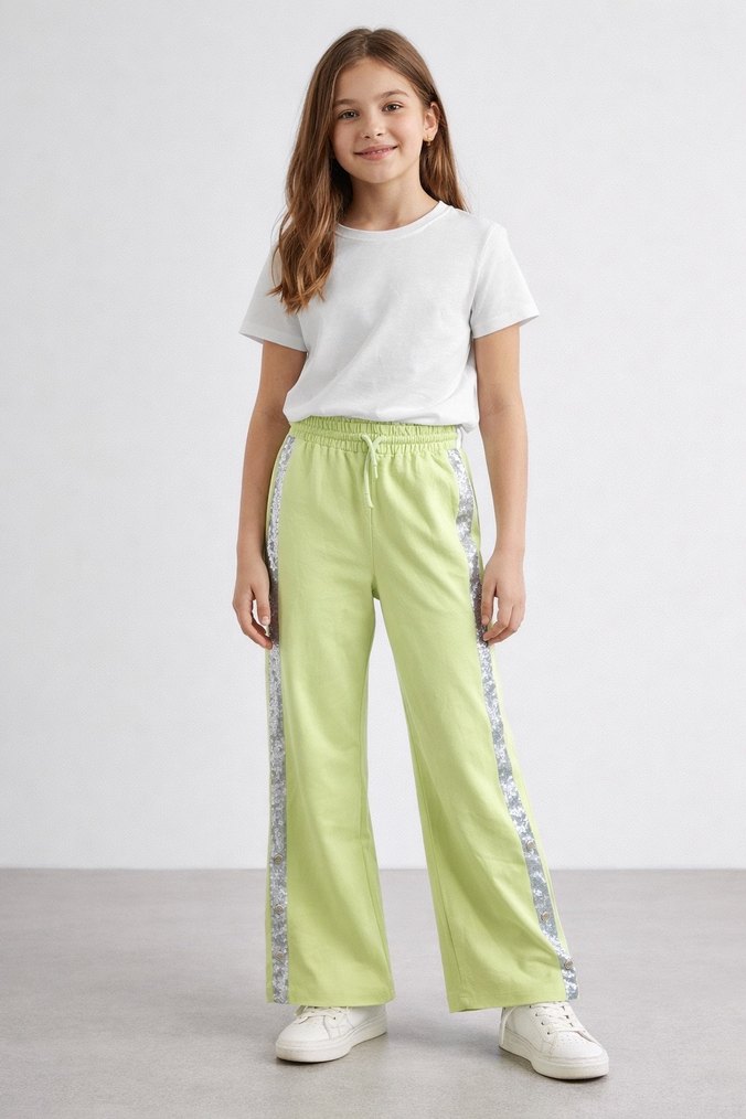 Kızlar için Gevşek Kesim Yeşil Eşofman Altı