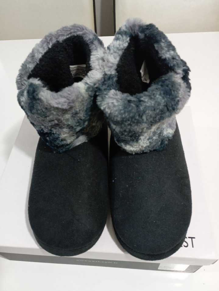 Kızlar için gri bağlamalı desenli, kürklü detaylı sıcak terlikler. Yumuşak ve rahat fleece kumaştan yapılmıştır, goth tarzına uygundur.