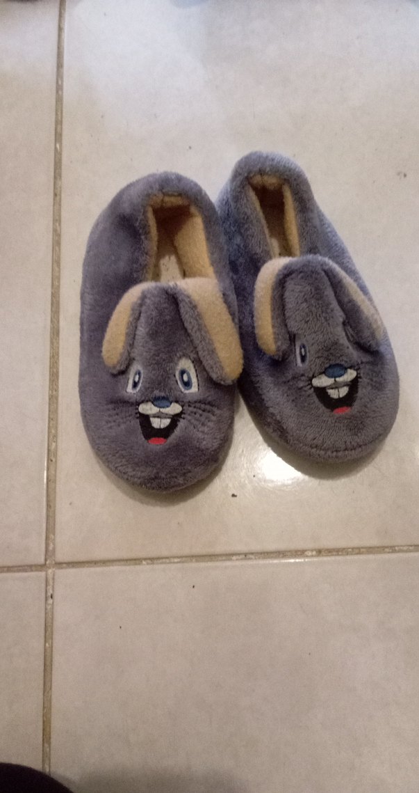 Kızlar için gri renkte, yumuşak ve sıcak kumaştan yapılmış, nakışlı tavşan yüzü ve kürk detaylı ev terliği.