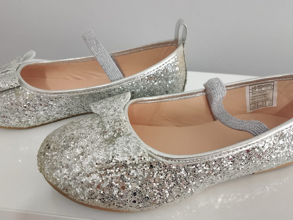 Kızlar için Gri Parlak Babet Ayakkabı