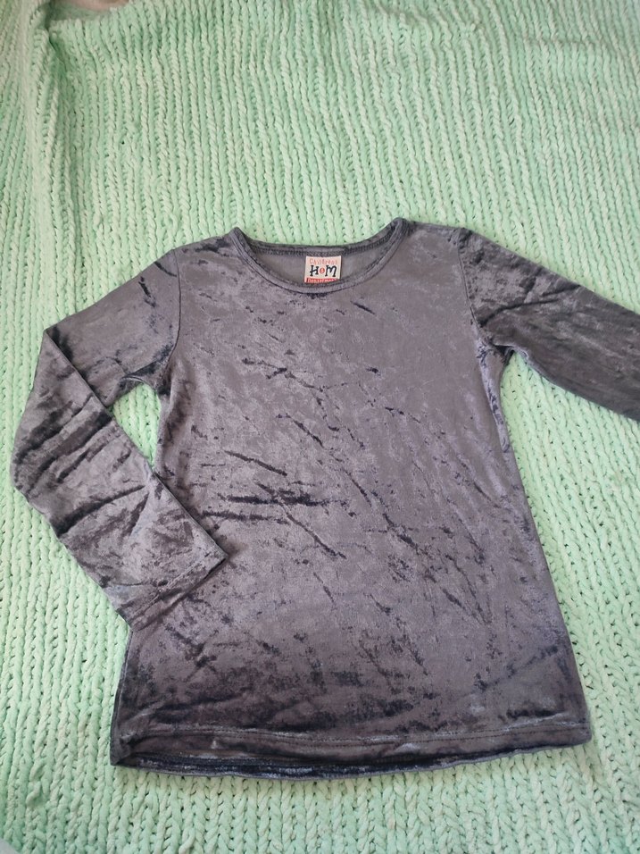 Kızlar için gri renkte, kadife kumaştan uzun kollu ve yuvarlak yakalı üst .Rahat kesimi ve goth tarzıyla kolay şıklık sunar.