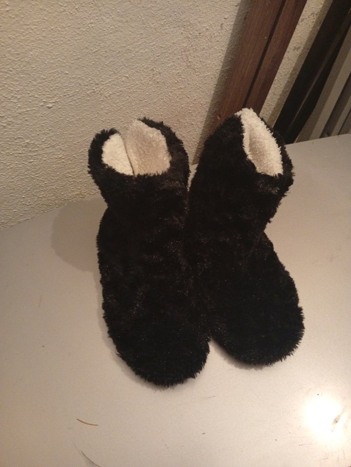 Kızlar için kahverengi, kürklü detaylı sıcak terlikler. Düz ve desensiz, gotik tarzda rahat bir tasarıma sahiptir.