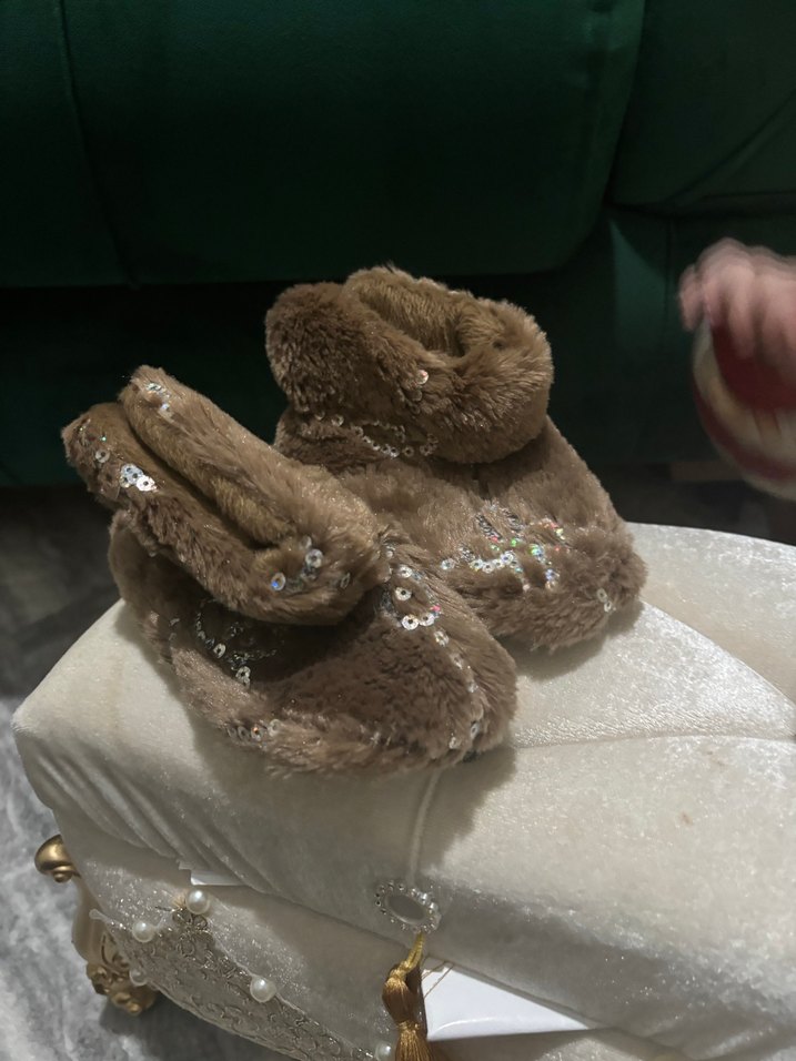 Kızlar için Kahverengi Kürklü Sıcak Terlik