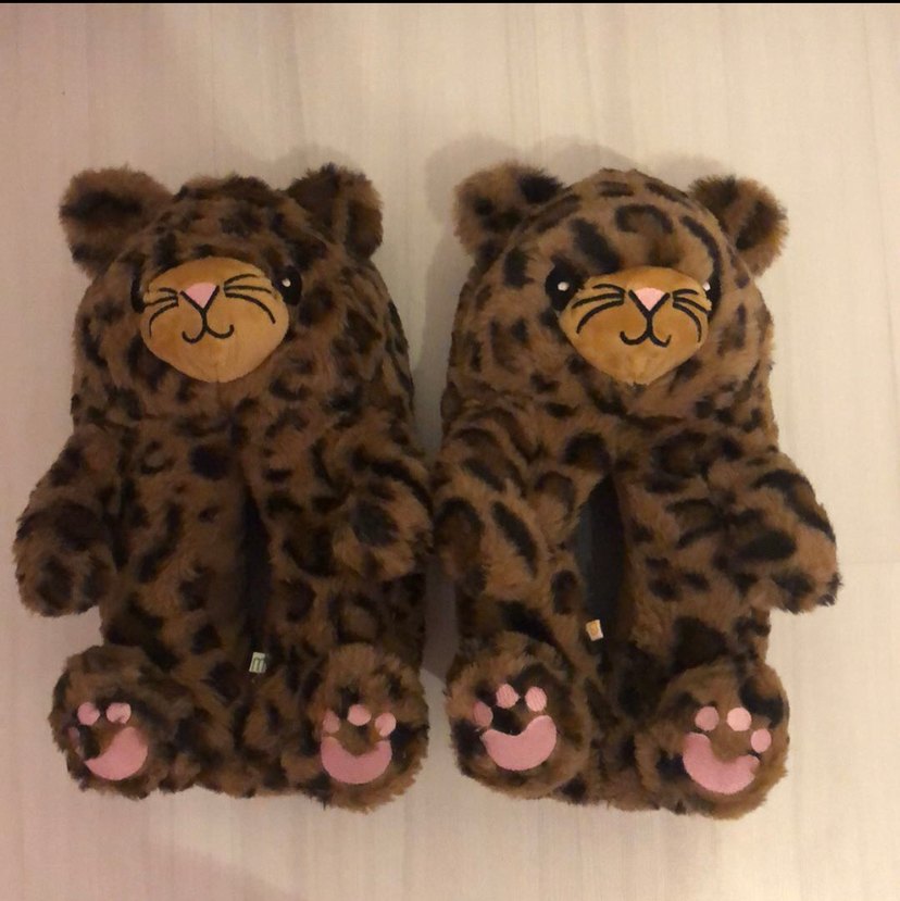 Kahverengi leopar desenli kızlar için sıcak terlik, yumuşak tüylü detaylara sahip, rahat kumaştan yapılmış.