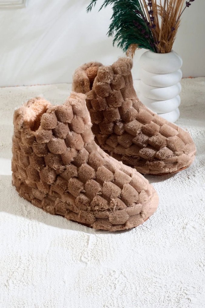 Kızlar için Kahverengi Peluş Ev Terliği