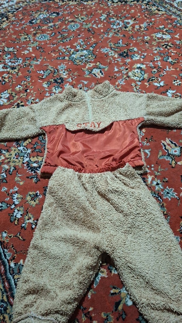 Kahverengi peluş kumaştan, bol kesim kız takımı. Nakış detaylı, uzun kollu, yarım fermuarlı ve yuvarlak yakalı. Yumuşak ve sıcak dokusu ile rahatlık sağlar. pantalon iki taraftan giyilir defosu son resimde ekledim kullanma engel değil