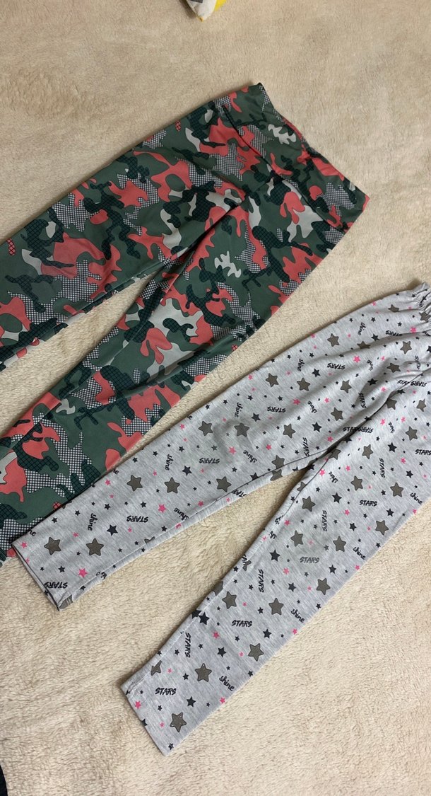 Gri kamuflaj desenli kız taytı, elastik bel ve bol kesim ile rahatlık sağlar. Yumuşak sentetik kumaştan üretilmiştir, günlük sokak stiline uygundur.
