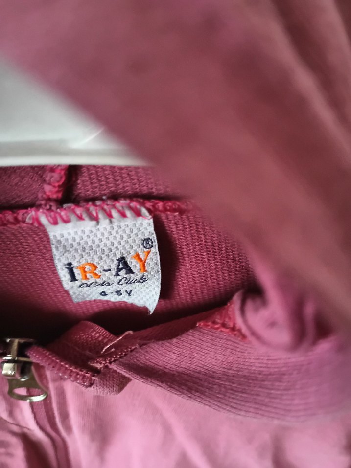 Kızlar için kapüşonlu ve fermuarlı, sentetik kumaştan yapılmış pembe sweatshirt. Renkli baskılı desenlere ve askılı kollara sahip, trend sokak stili için uygun.