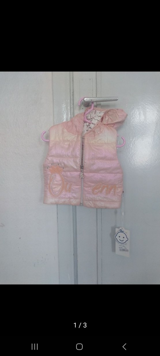 Kızlar için kapüşonlu, fermuarlı ve fit kesim pastel pembe yelek. Yumuşak ve sıcak kumaştan, batik desenli, rahat sokak stili için uygundur.