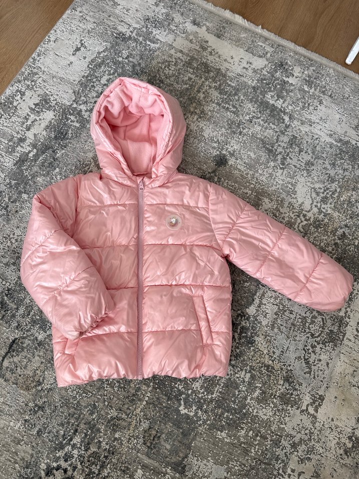 Kızlar için Kapüşonlu Pembe Mont 4/5 yaş uyumlu