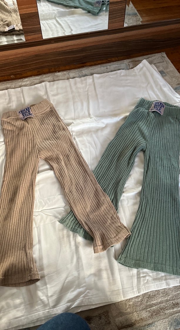 Kızlar için Keten Bej Pileli Dar Kesim Pantolon