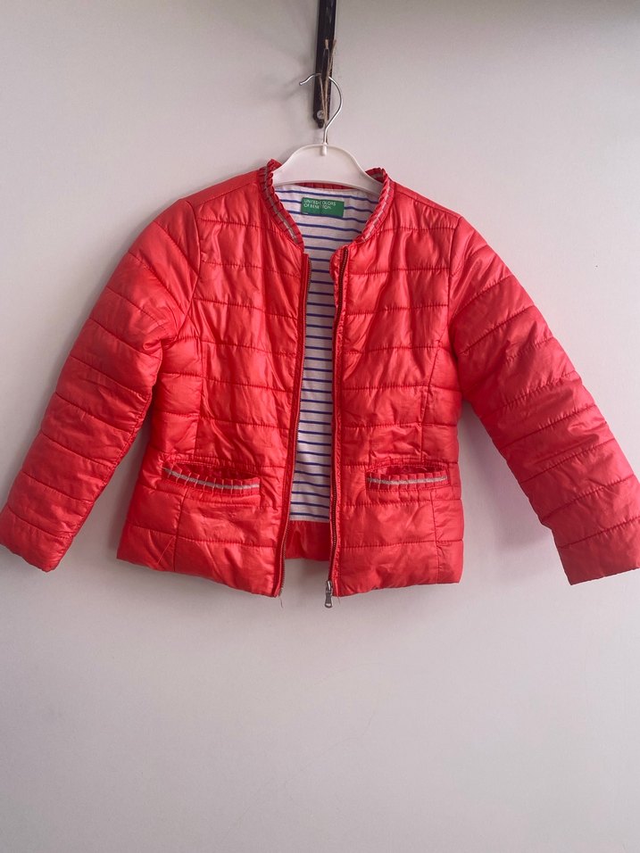 Kızlar için kırmızı renkli, fermuarlı ve ince kesim mont. Düz, desen içermeyen, sentetik kumaştan yapılmıştır. Trendy sokak stiline uygundur.