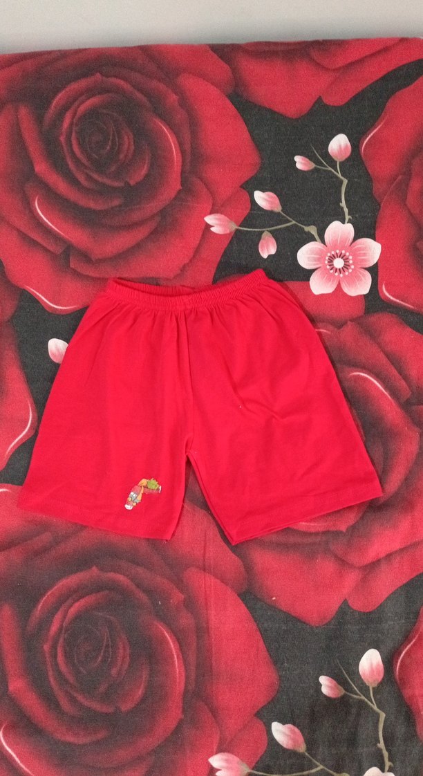 Yumuşak kumaştan kızlar için kırmızı, fitted kesim şort. Renkli nakış detaylarıyla cesur, streetwear tarzı sunar. sorunsuz temiz 4-5 yaş
