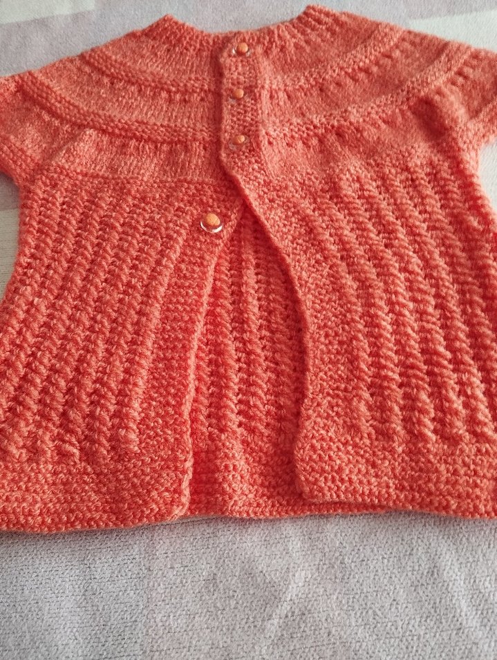 Kızlar için bol kesim, kolsuz kırmızı örgü hırka. Düğmeli ve dokulu örgü deseni ile bohem tarzda.