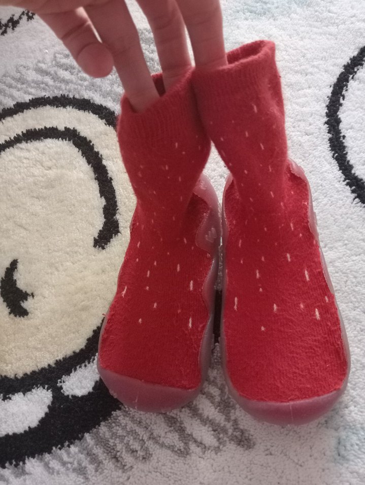 Kızlar için kırmızı örgü terlikler, kauçuk tabanlı ve sade renkli tasarıma sahiptir. Sıcaklık ve konfor sunar.