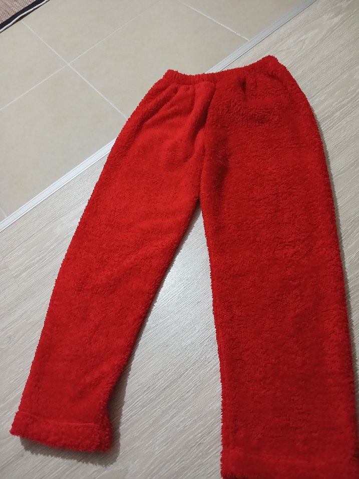 Kızlar için kırmızı, yumuşak ve sıcak dokulu, rahat kesim örme sweatpants. Düz ve sade tasarıma sahiptir.