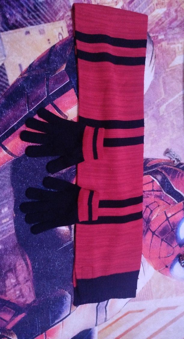 Kızlar için kırmızı siyah renklerde, örgü ve yumuşak sıcak kumaştan yapılmış, goth tarzına uygun eldivenler. Desensiz ve sade tasarım.