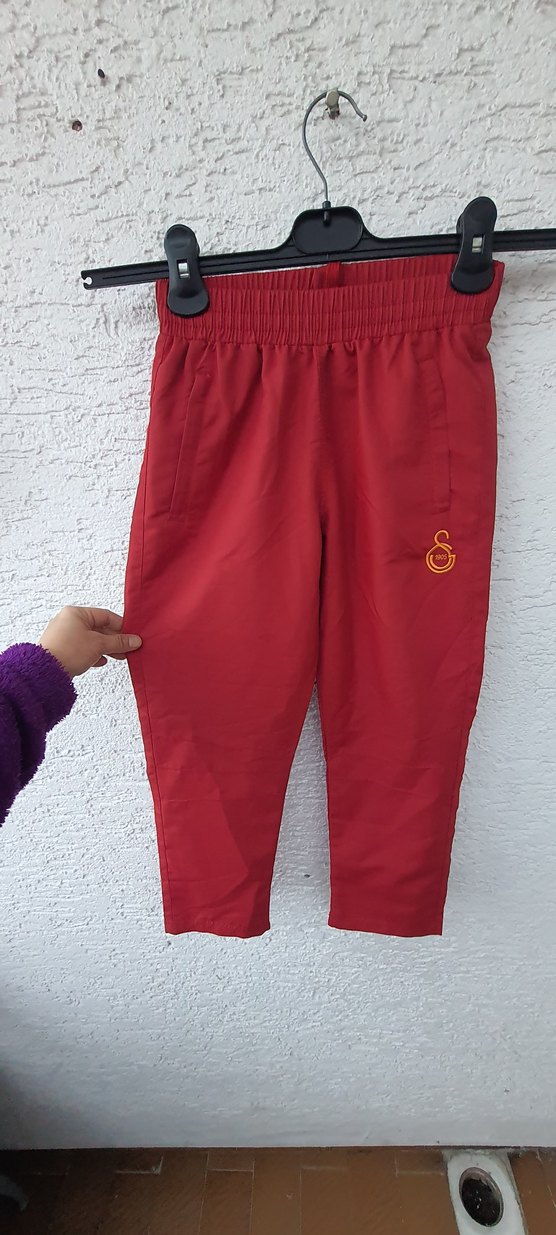 Kızlar için parlak kırmızı renkli, yumuşak ve sıcak kumaştan, lastikli beli ve cırt cırtlı detaylı, fit kesim streetwear eşofman altı.