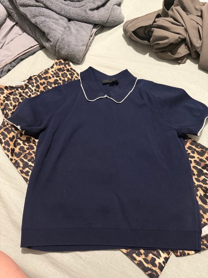 Kızlar için lacivert örme pamuk polo tişört, yakalı ve kısa kollu, rahat kesimiyle günlük sokak tarzına uygun.