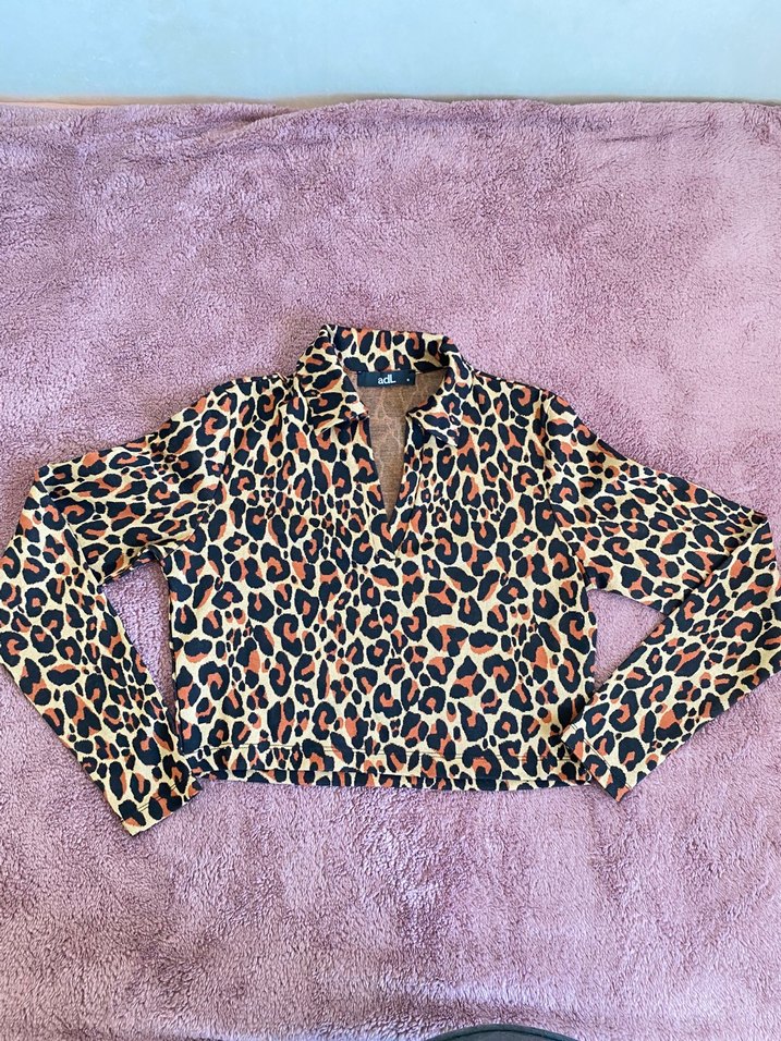 Kızlar için leopar desenli, kürklü detaylı, yakalı ve dar kesim sentetik kumaş ceket. Bohem ve sokak giyimi tarzına uygundur.