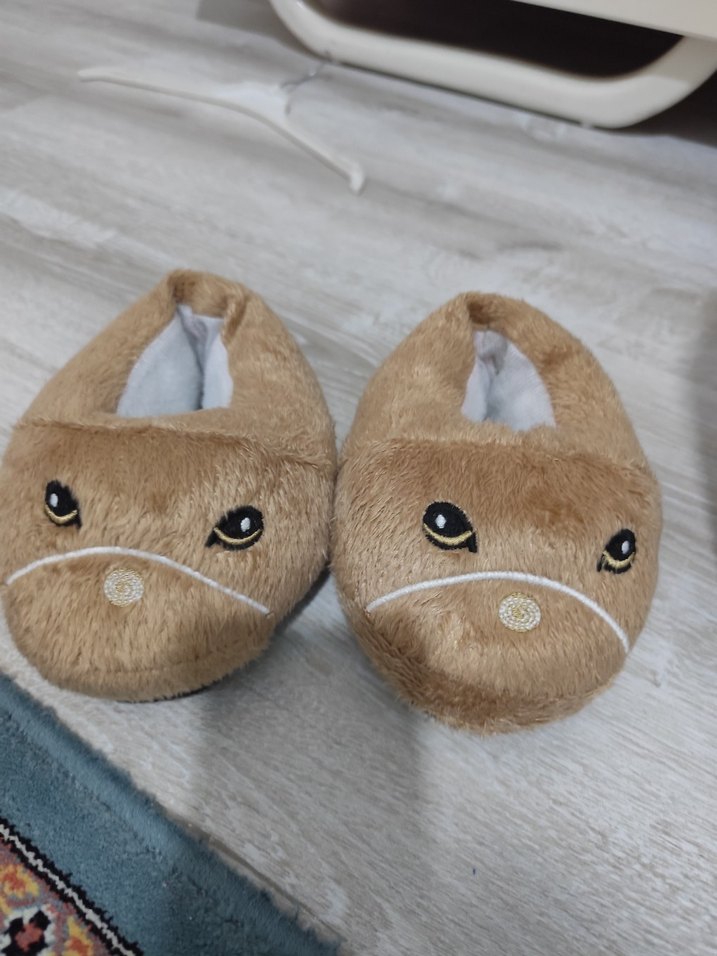 Kızlar için kahverengi, leopar desenli, kabarık ve sıcak tutan polar terlikler, sokak stili için uygun.2 yaş için uygundur