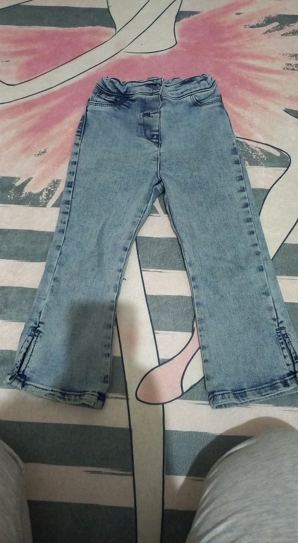 Kızlar için hafif mavi batik desenli, regular fit kot pantolon. Paça kısmında fermuar detayları bulunur, sokak modasına uygun. Ayarlanabilir bel. 2 - 3 yaş icin uygundur. Boy: 52 cm
