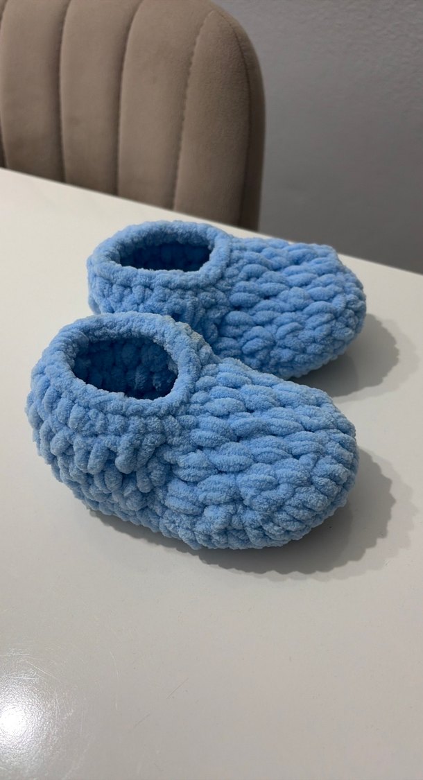 Kızlar için Mavi Örgü Yün Ev Terliği