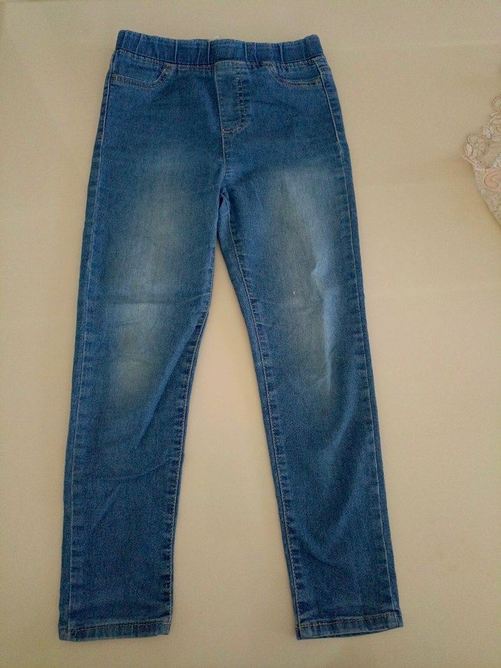 Kızlar için mavi renkli, regular fit kesime sahip sade ve şık denim pantolon. 8-9 yaş