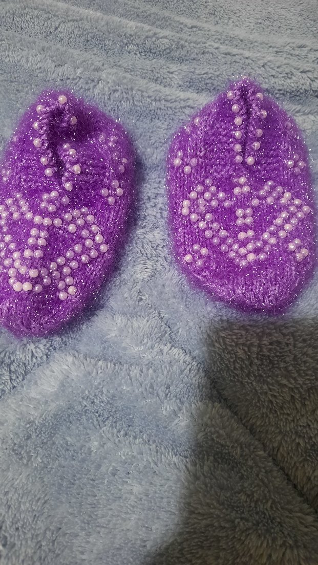 Mor renkli, boncuk işlemeli örgü kız patigi
