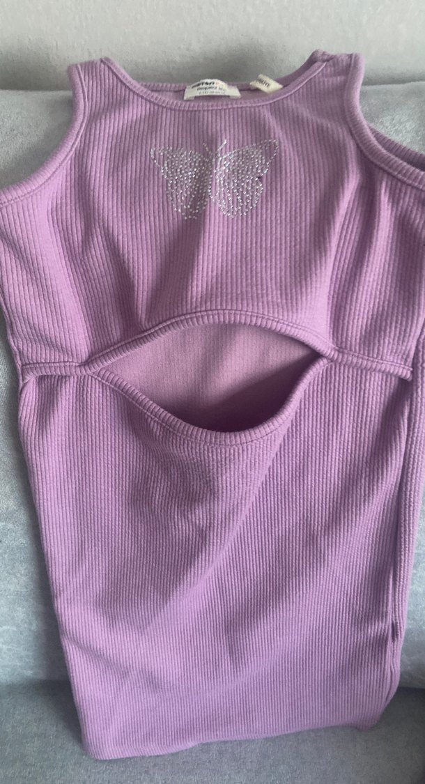 Pastel mor renkte, kelebek taş detaylı, fermuarlı, bisiklet yakalı, kızlar için dar kesim atlet. Rahat sentetik kumaştan üretilmiştir.