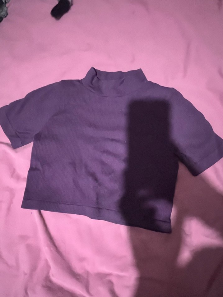 Kızlar için boğazlı, kısa kollu, dar kesim mor tişört, yumuşak ve sıcak kumaştan üretilmiştir. Trend sokak modasına uygundur.