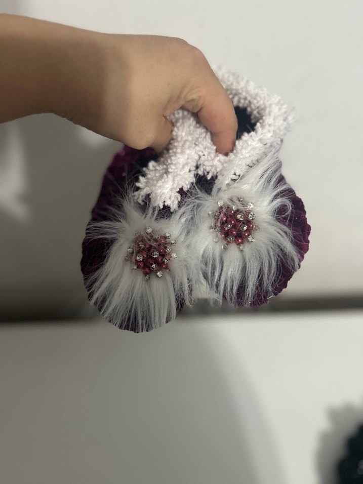 Kızlar İçin Mor Nakışlı Kürklü Örgü Terlik