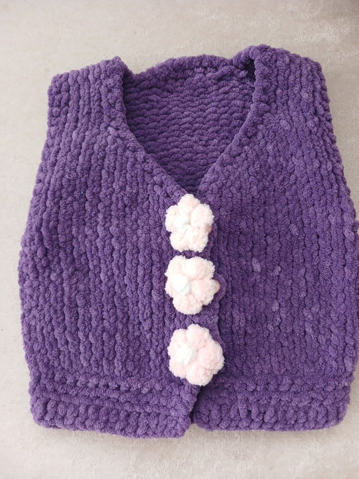 Kızlar için Mor Örgü Kolsuz Süveter