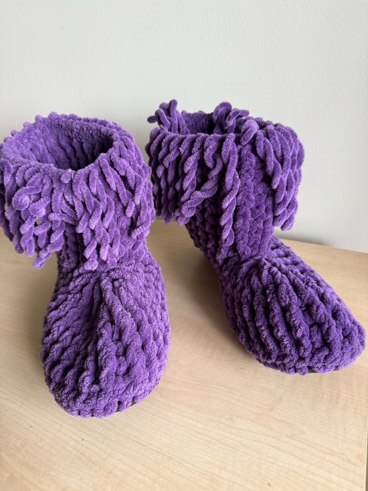 Mor renkli, örgü dokulu kızlar için sıcak ev terlikleri. Bohem tarzıyla renkli ve rahat, evde kullanım için uygundur. 37 no çok az kullanıldı temiz üründür