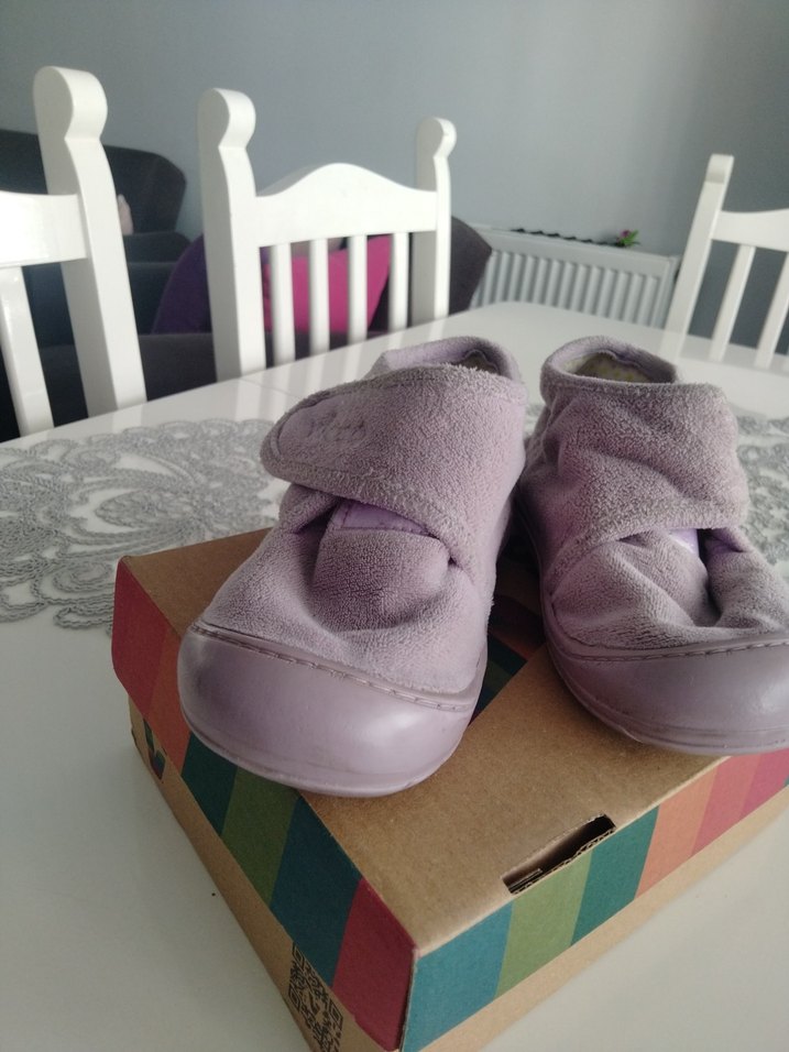 Pastel mor renkte, yumuşak ve sıcak kumaşlı kız terlikleri. Kaymaz tabanlı ve ayarlanabilir Velcro bantlı, sade normcore tarzda.