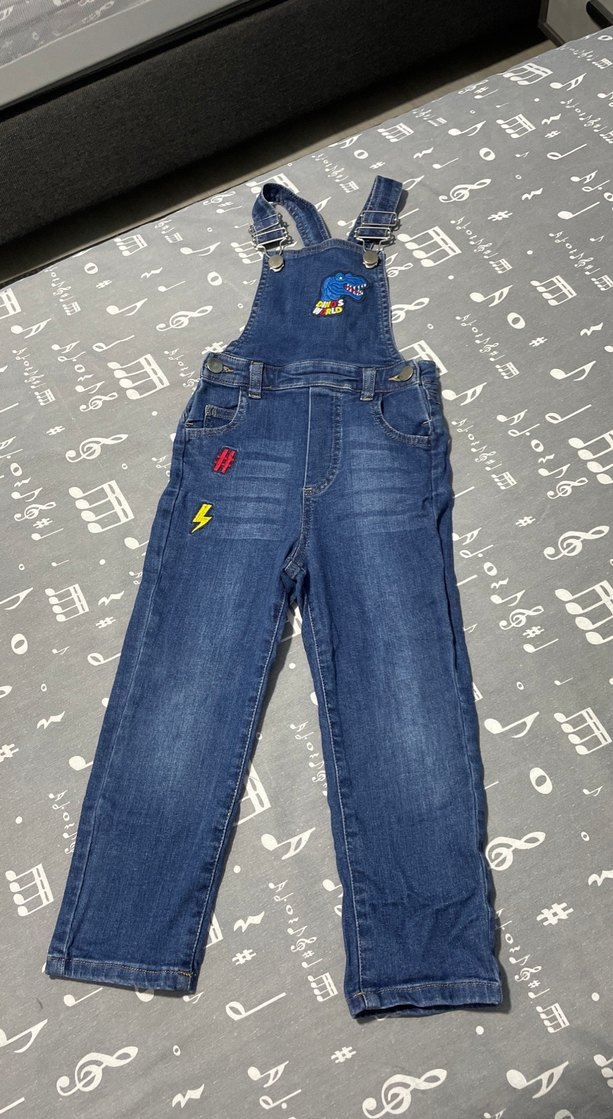 Nakışlı renkli detaylara ve tokalı ayarlanabilir askılara sahip mavi denim kız salopeti, regular fit ve kolsuz tasarımla.